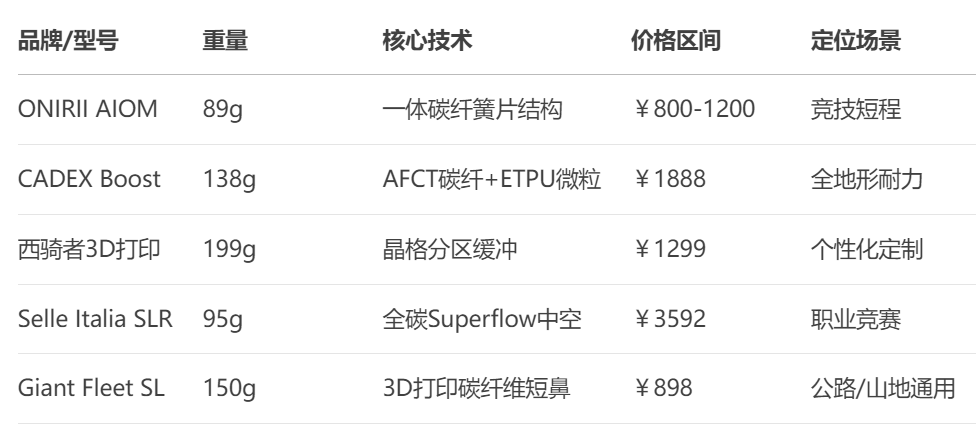 以下是不同品牌的碳纖維自行車坐墊的對比及應用場景: